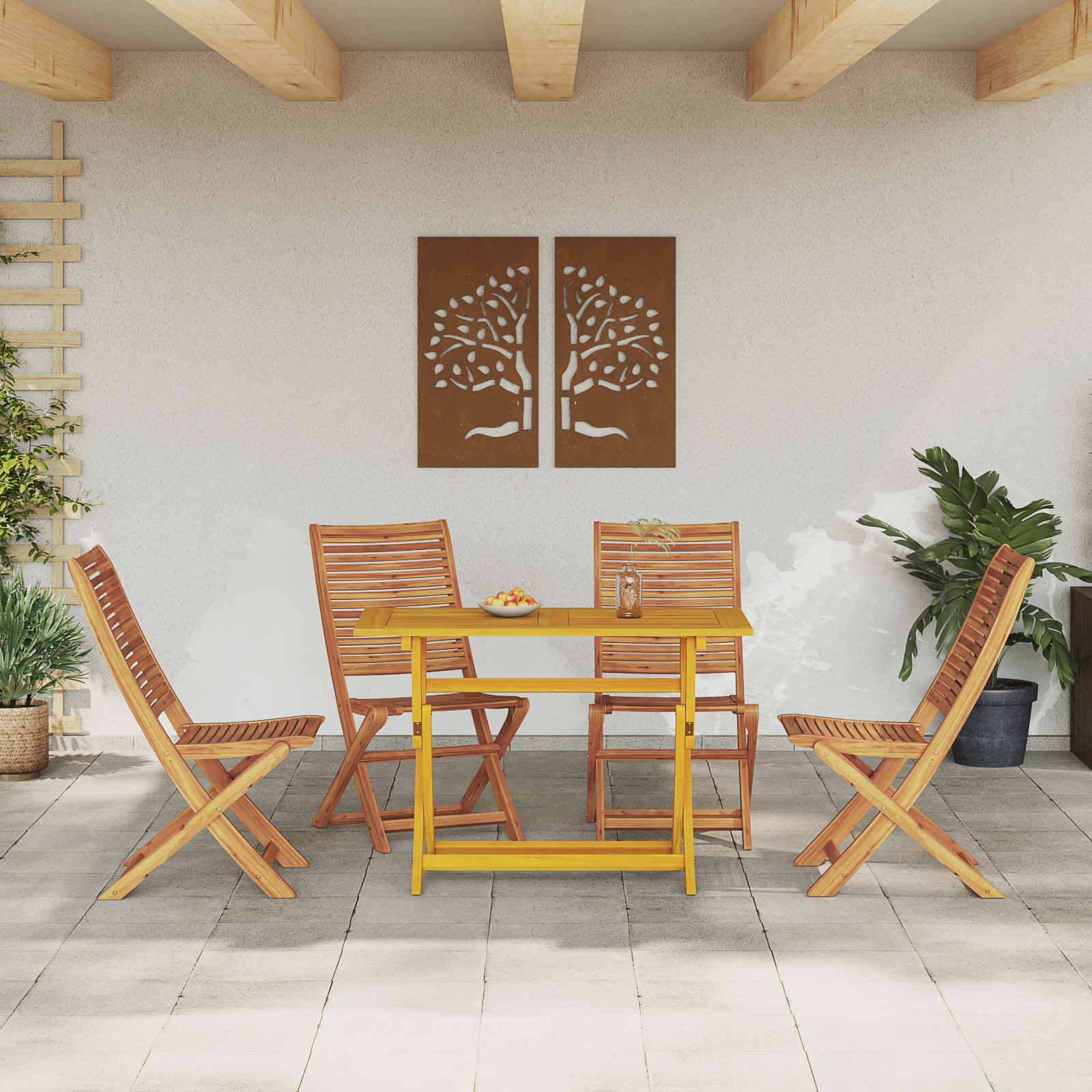 - Patogios kėdės: Kiekviena kėdė su lygiu paviršiumi ir gera atrama, todėl tavo valgymas lauke patogus tiek ryte, tiek per naktį po žvaigždėmis.